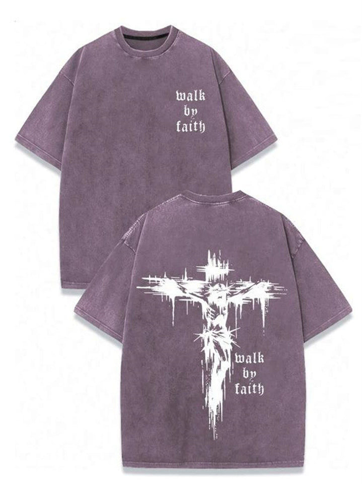 Men's Cross Print Walk By Faith Religious Graphic Tee