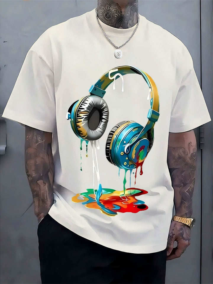 Men's Headphone Graphic Print Casual Short Sleeve T-Shirts