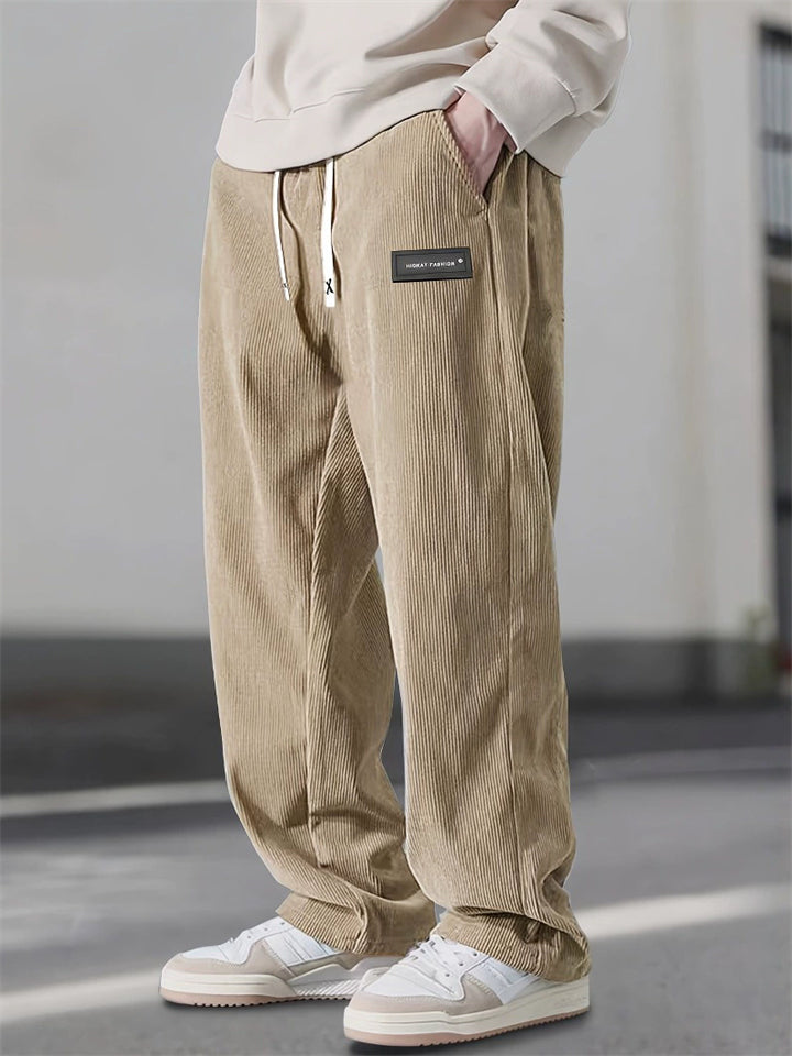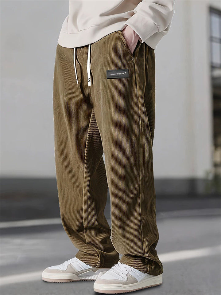 Men's Casual Elastic Waist Straight Leg Corduroy Pants
